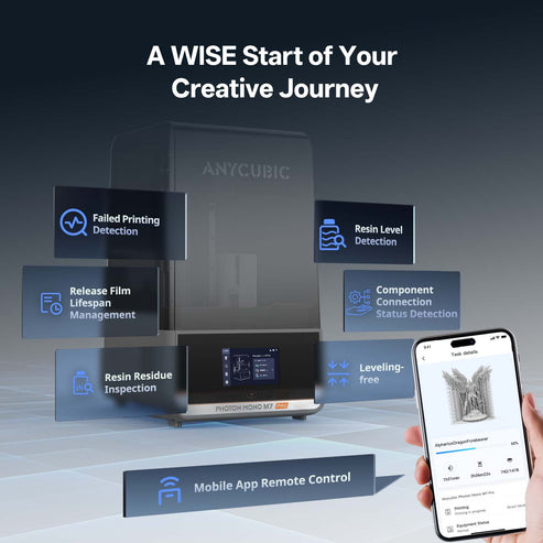 【ฟีเจอร์การพิมพ์อัจฉริยะ】เครื่องพิมพ์เรซิน Photon Mono M7 มีระบบตรวจสอบอัจฉริยะ 7 แบบ ได้แก่ การตรวจสอบสถานะการติดตั้งแท่นพิมพ์ การตรวจสอบการเชื่อมต่อของชิ้นส่วน การตรวจหาคราบตกค้าง การตรวจสอบปริมาณเรซิน การตรวจจับงานพิมพ์ล้มเหลว การจัดการอายุการใช้งานของฟิล์มปลดแบบ และกราฟตรวจจับแบบเรียลไทม์ ฟีเจอร์เหล่านี้ช่วยลดข้อผิดพลาดในการใช้งานและเพิ่มประสิทธิภาพในการพิมพ์