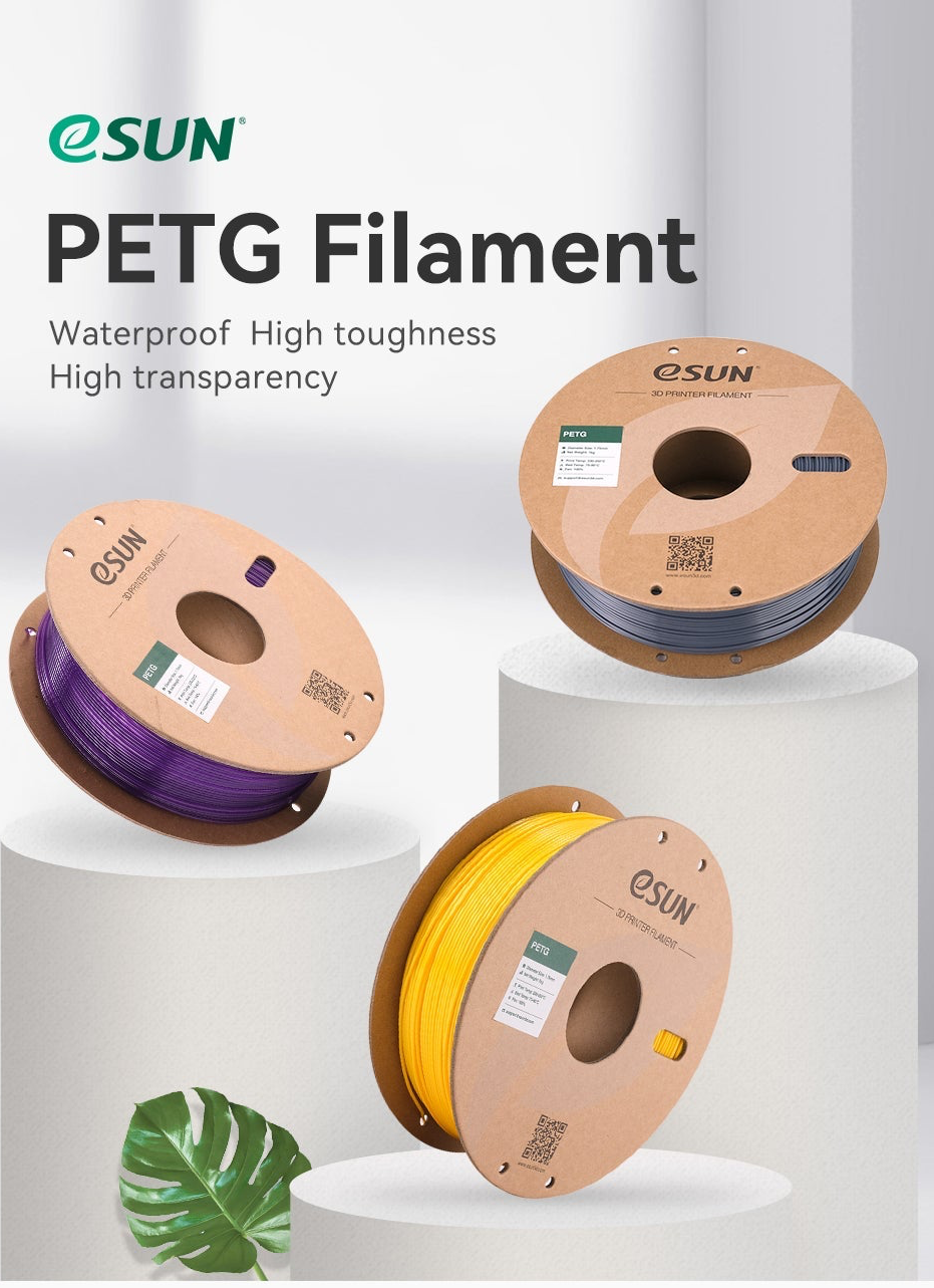 eSUN PETG Filament คือวัสดุโพลิเมอร์เกรดพรีเมียม (Polyethylene Terephthalate Glycol-modified) ที่ถูกออกแบบมาเพื่อการพิมพ์ 3 มิติโดยเฉพาะ ผสมผสานคุณสมบัติที่ดีที่สุดของวัสดุยอดนิยมอย่าง PLA และ ABS เข้าไว้ด้วยกัน มอบทั้งความแข็งแกร่ง ทนทาน และยังพิมพ์ง่าย ไม่ยุ่งยาก!