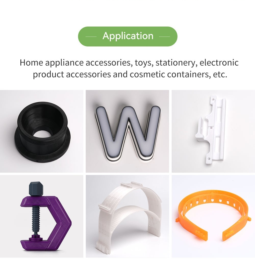 พิมพ์ง่าย ไม่บิดงอ: มีอัตราการหดตัวต่ำมาก (Low Warping) ทำให้พิมพ์ง่ายเหมือน PLA ไม่จำเป็นต้องใช้ตู้ควบคุมอุณหภูมิ (Enclosure) สำหรับเครื่องพิมพ์ FDM ส่วนใหญ่