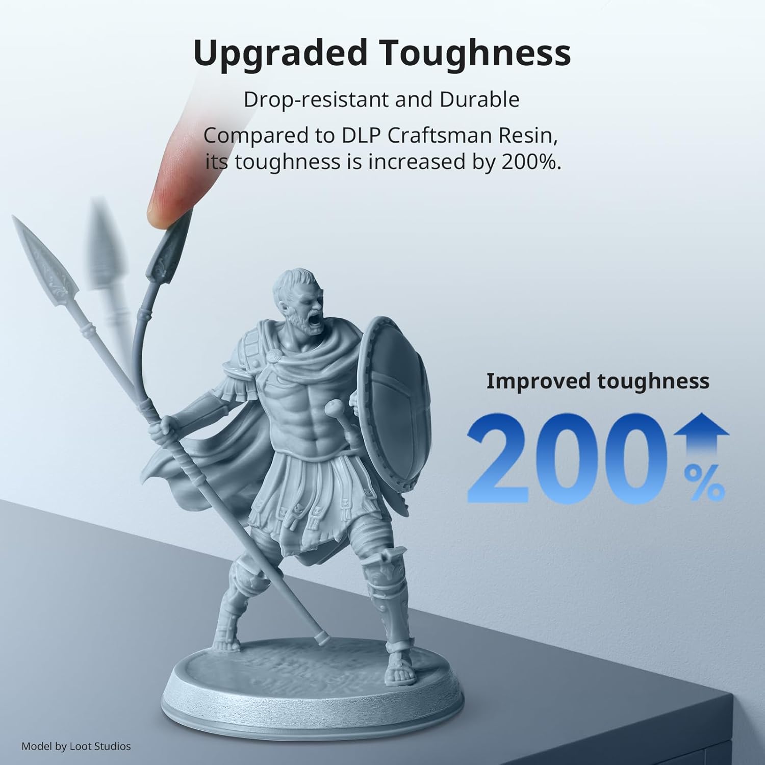 นอกจากความละเอียดสูงแล้ว โมเดลที่พิมพ์ด้วย ANYCUBIC 3D Printer Texture Resin ยังมีความทนต่อแรงกระแทกและมีความแข็งแรงทนทานมากขึ้น เมื่อเทียบกับ DLP Craftsman Resin ความเหนียวเพิ่มขึ้นถึง 200%