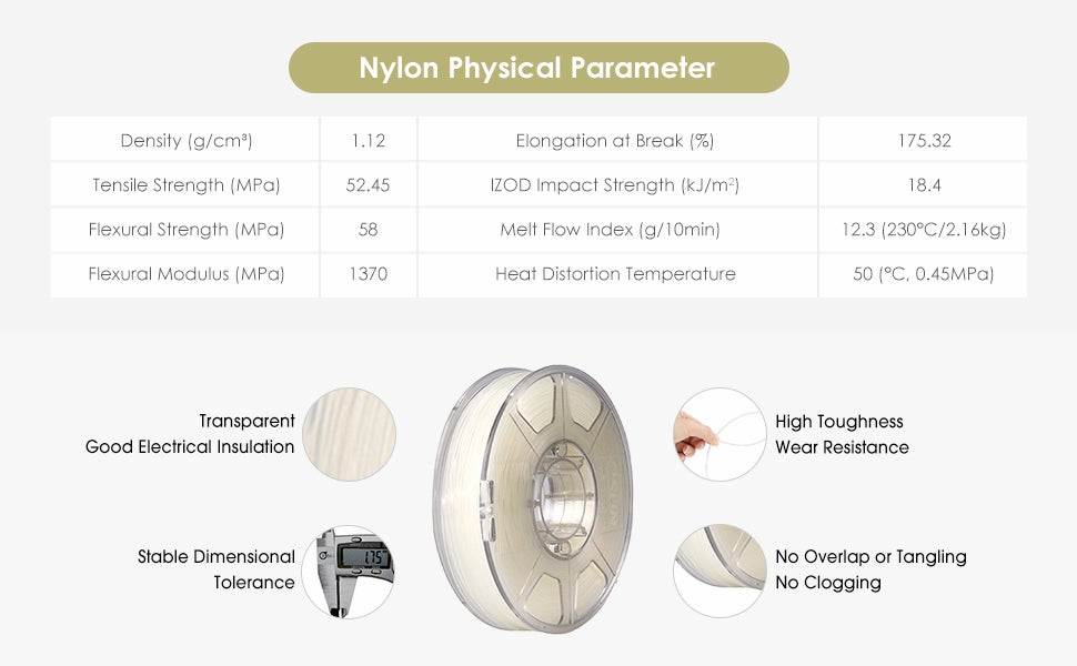 Note: ePA Nylon is sensitive to moisture. Always keep it dry before and during printing.