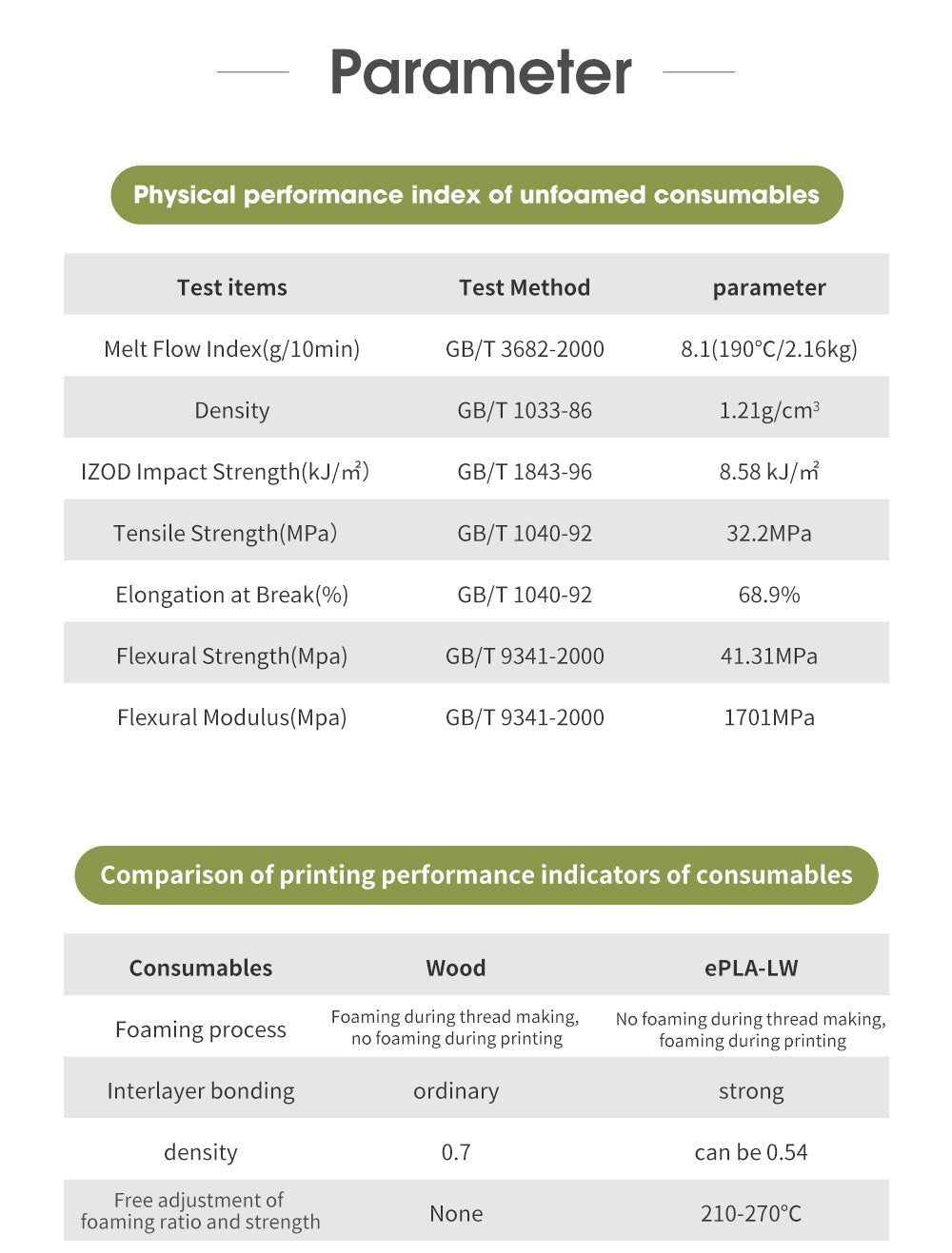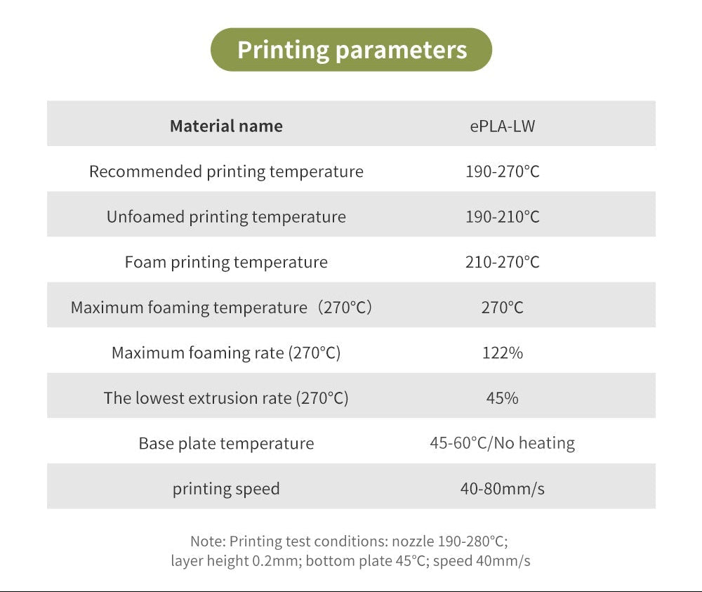 A material specially developed for aeromodelling. The interlayer bonding is stable, and the foaming rate and strength can be controlled by adjusting the printing temperature. Using active foaming technology to achieve lightweight, low-density PLA parts, the foaming volume ratio is 220%, and the density is as low as 0.54g/cm3. Foaming makes the layered pattern almost invisible, and the surface of the printed item is matte and delicate. Under the same model and at the same speed, the lightweight PLA enables the model aircraft to have a lighter wing load and a lower stall speed, which can greatly improve the performance of the model aircraft.