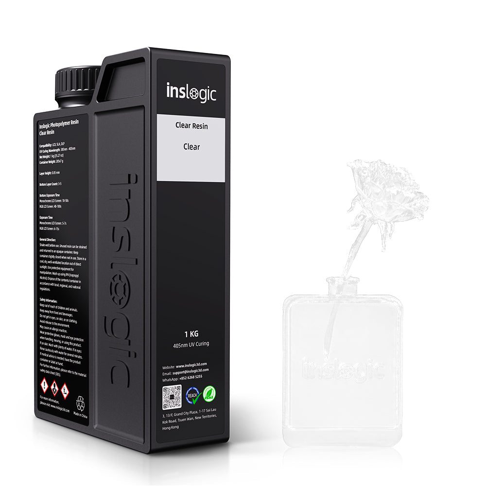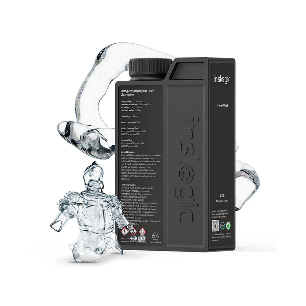 Experience unparalleled transparency with Inslogic Clear Resin. Developed for those seeking high transparency, smooth surfaces, and sharp detail, Inslogic Clear Resin is ideal for printing objects that mimic glass or clear plastic materials, such as lenses, translucent prototypes, and intricate works of art.