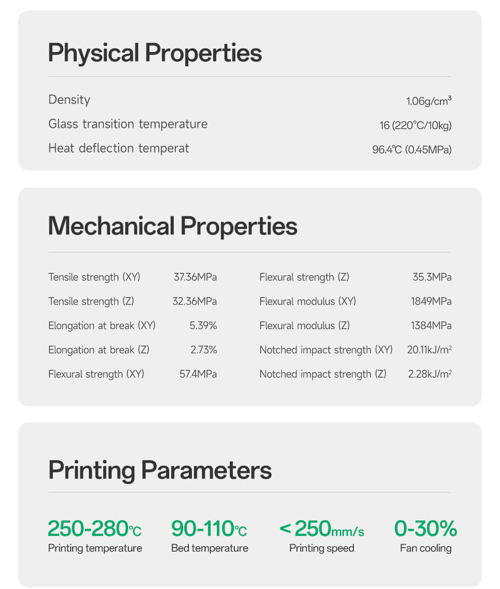 💥 High Strength and Impact Resistance: Similar properties to ABS but with less odor and better resistance to sunlight. Ensures strength and durability for practical functional parts.