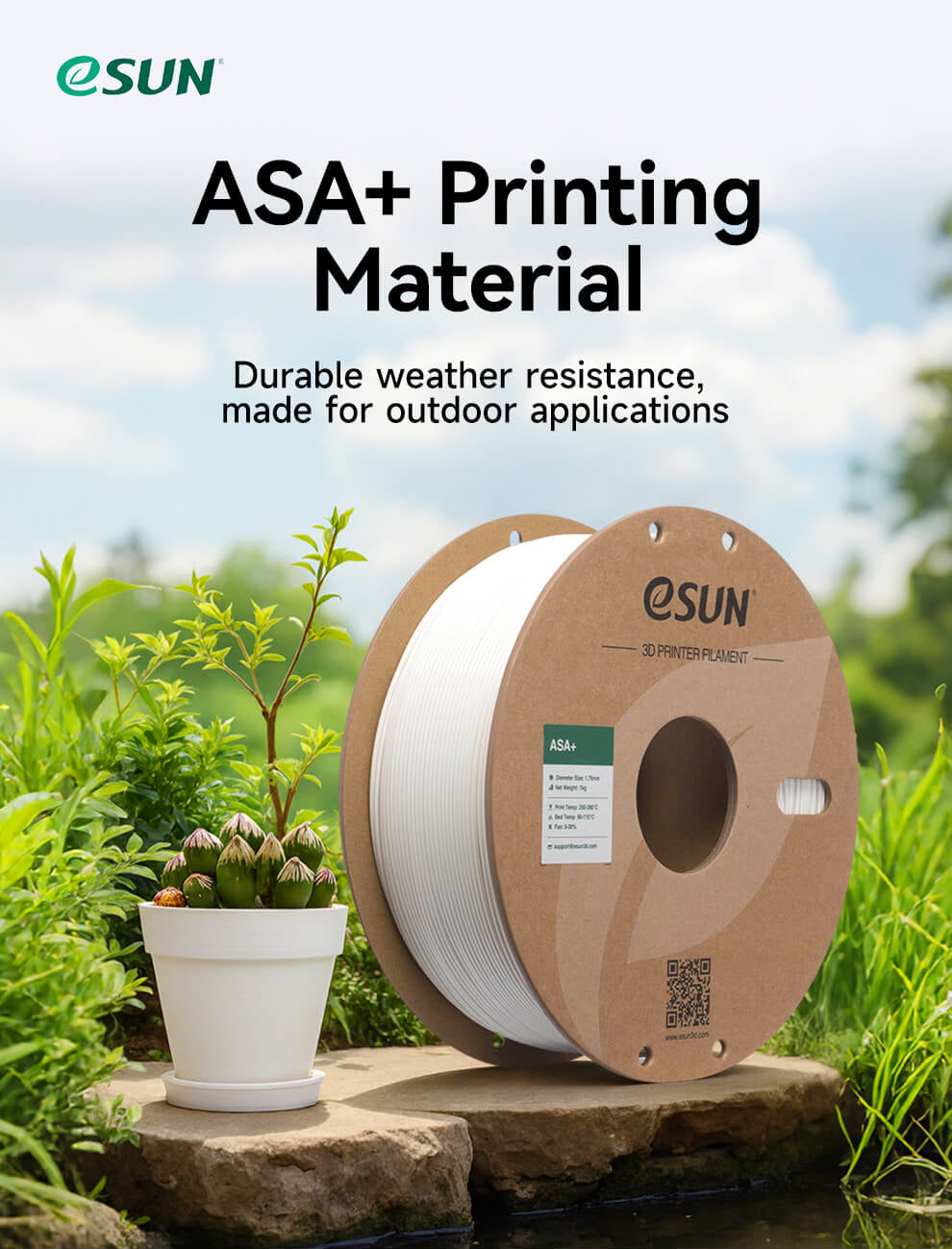 eSUN ASA+ Filament is the ultimate 3D printing material designed to withstand all weather conditions. Superior to standard ABS in terms of UV resistance and environmental degradation, it's the number one choice for durable, long-lasting outdoor applications such as automotive parts, outdoor equipment, or control boxes exposed to sun and rain.