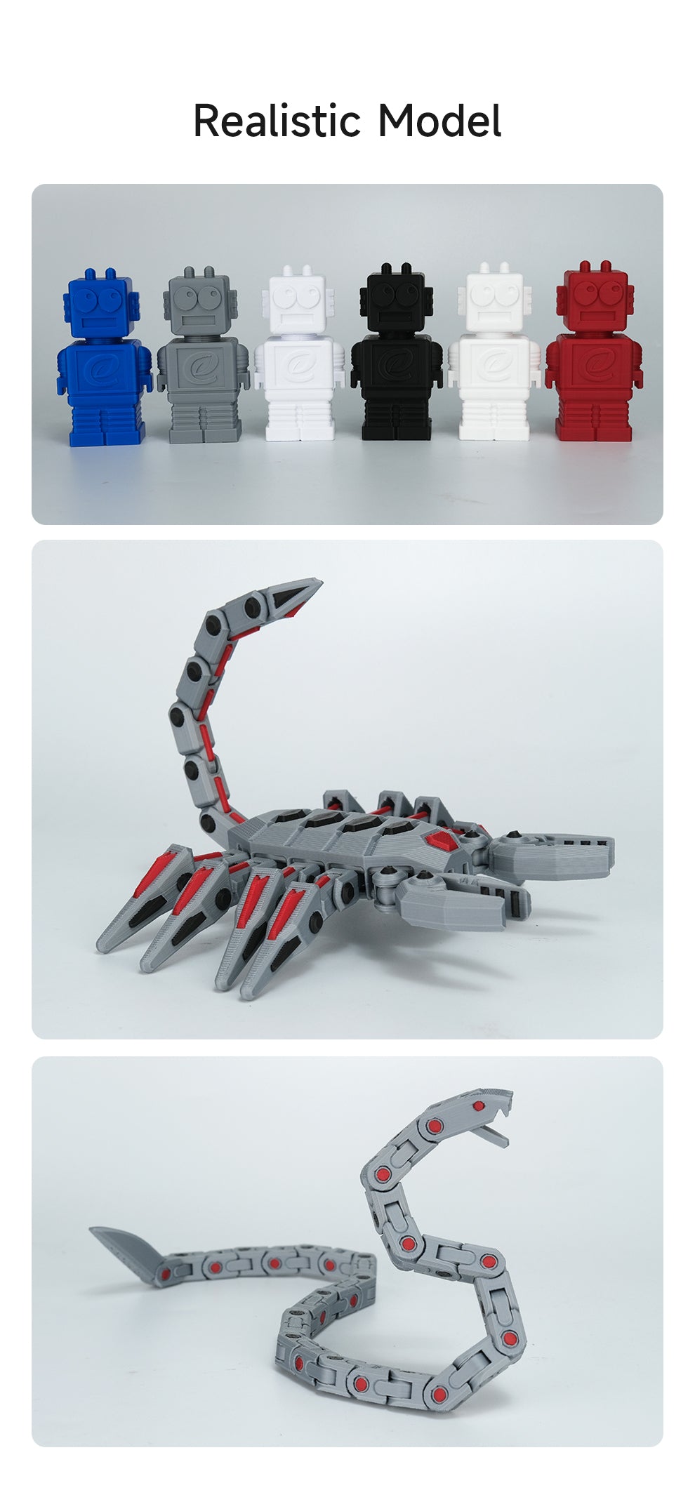 No air bubbles, few fibers, high printing success rate, low odor, no warping, low shrinkage, no deformation, no cracking, accurate printing and beautiful shaping results. Made from starch raw materials extracted from renewable plant resources, it is suitable for widespread use in creative arts, animation industry, film and television props and many other fields.